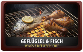 zum Beispiel Lachs von der Holzplanke oder Lachs kalt geräuchert. Aber auch diverse Hähnchen Varianten