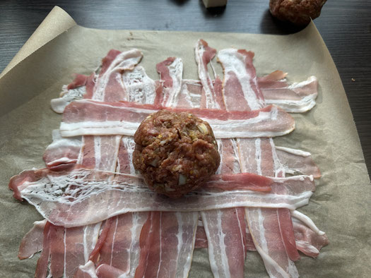 Im Anschluss die Kugel auf das Bacon Netz legen.