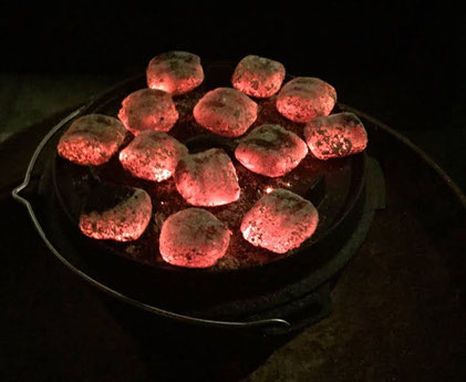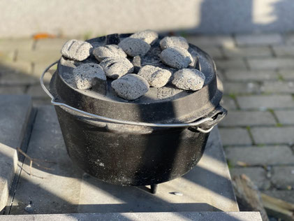 | Dutch Oven & Pyron | Kokoskohle oder Briketts | Gleichmäßige Hitze, wenig Asche |